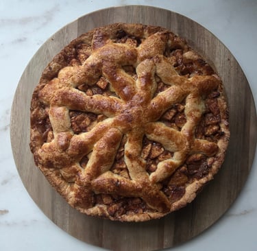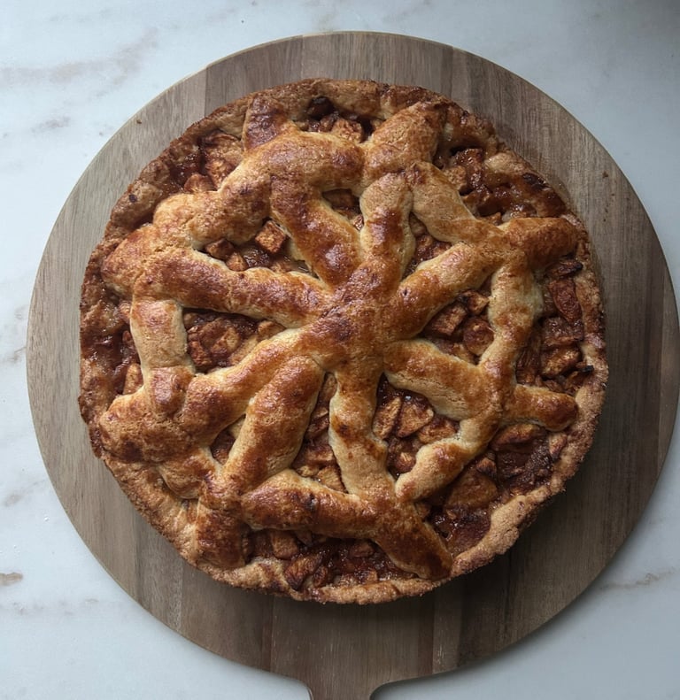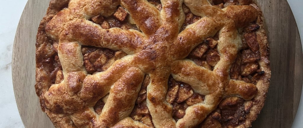Van de rest van het deeg repen maken en een ruitpatroon leggen. Ziet er meteen professioneel uit, terwijl je eigenlijk maar wat doet.