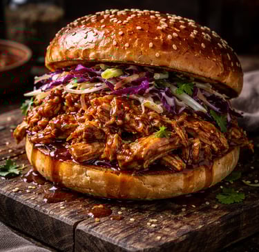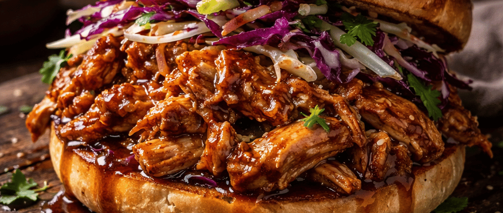 Geen droge kipfilet waar je drie liter saus bij nodig hebt om ’m weg te krijgen. Nee, dit is pulled chicken van sappige kippendij, vuur, saus en een wit bolletje. Simpel, smerig lekker en zonder gedoe.